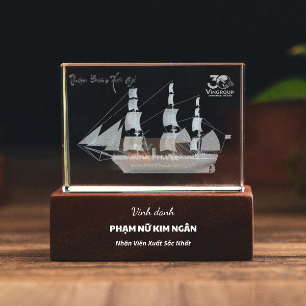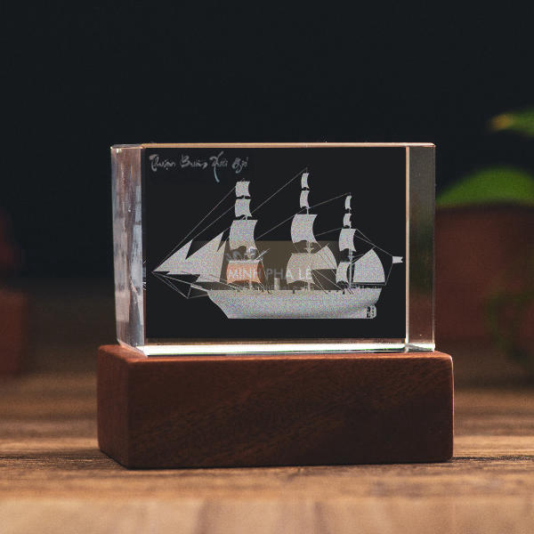 Tên sản phẩm: Khối pha lê 3d thuận buồm xuôi gió đế gỗ led