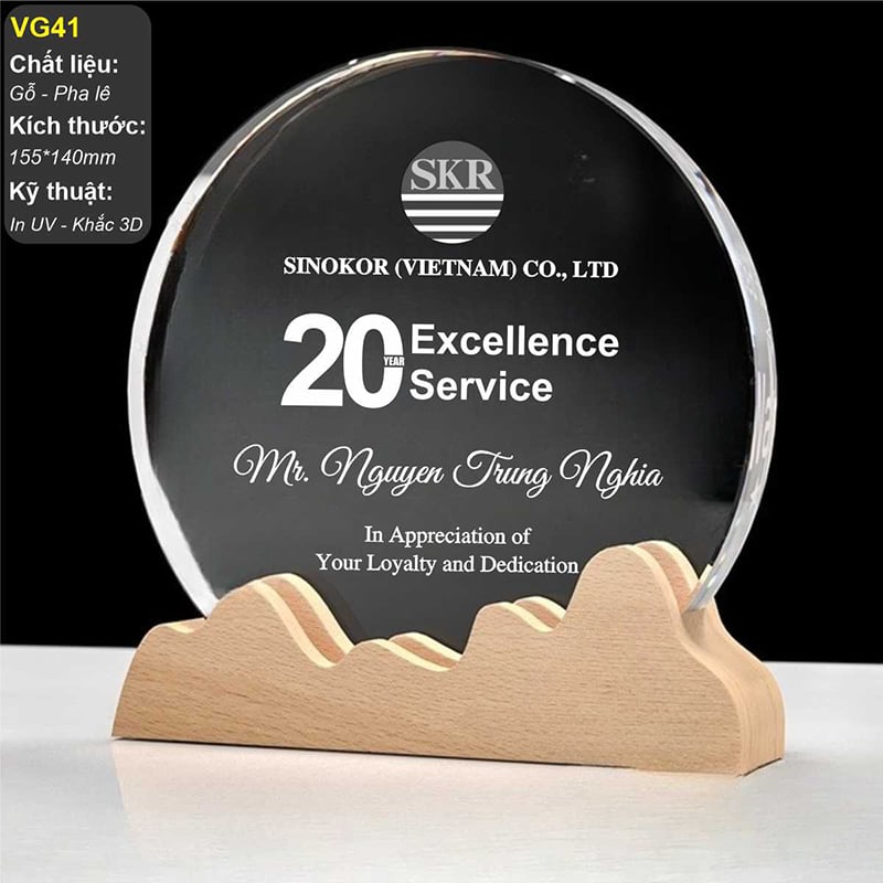 Kỷ niệm chương pha lê kết hợp gỗ VG41 CHÍNH SÁCH - ƯU ĐÃI (CHÚ Ý: GIÁ CHƯA BAO GỒM VAT)