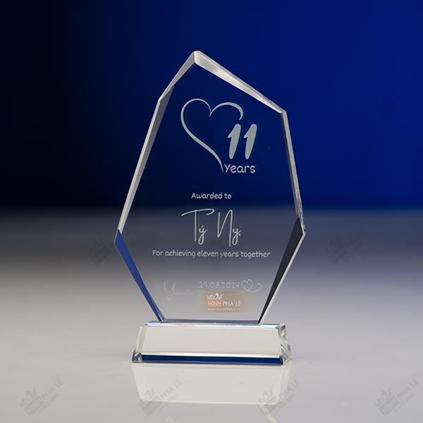 Kỷ niệm vĩnh cửu: Cúp vinh danh pha lê không chỉ là niềm kiêu hãnh một lần mà nó còn trở thành một kỉ niệm vĩnh cửu. Đánh dấu khoảnh khắc đáng nhớ, cột mốc (thành tựu) đáng tự hào mà người nhận được sẽ mang trong suốt hành trang cuộc đời.